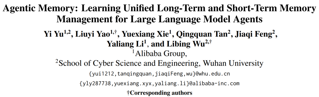 论文标题:Agentic Memory: Learning Uniffed Long-Term and Short-Term MemoryManagement for Large Language Model Agents