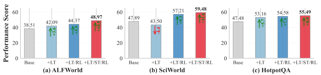 图8:LTM、STM和RL组件的消融研究(Qwen2.5-7B)