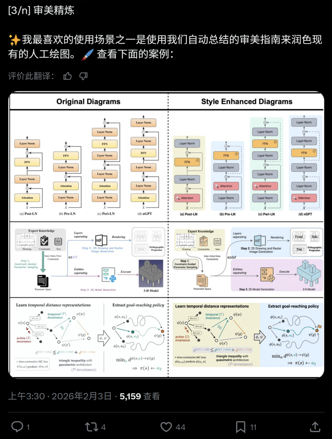 负责学术界的“高级审美”。它从海量顶会论文里提炼出配色规范、字体偏好、留白习惯、箭头样式等“NeurIPS风”美学规则,然后强行套用到规划脚本上,让图看起来“就是那种味儿”。