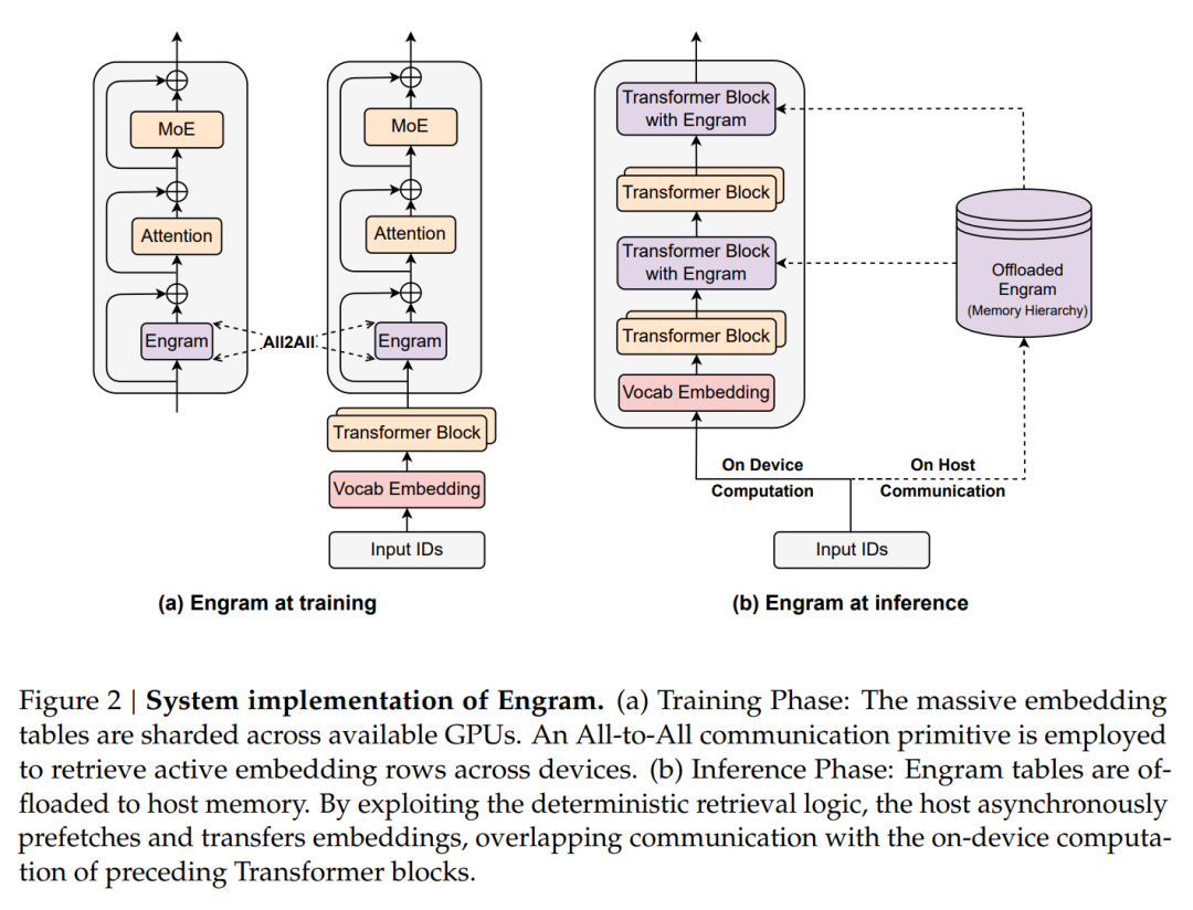 Engram 的核心创新之一,在于其 O(1) 复杂度的哈希 N-gram 查找机制。它可以高效存储和检索静态、重复性强的模式信息,从而避免模型在每一次推理中反复“思考”这些已知内容。
