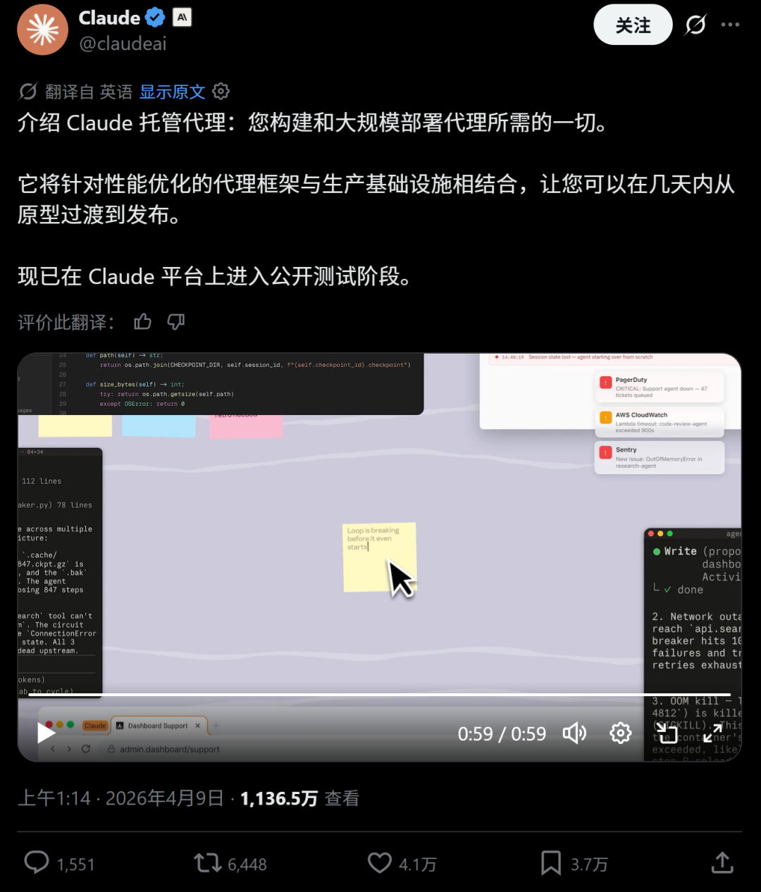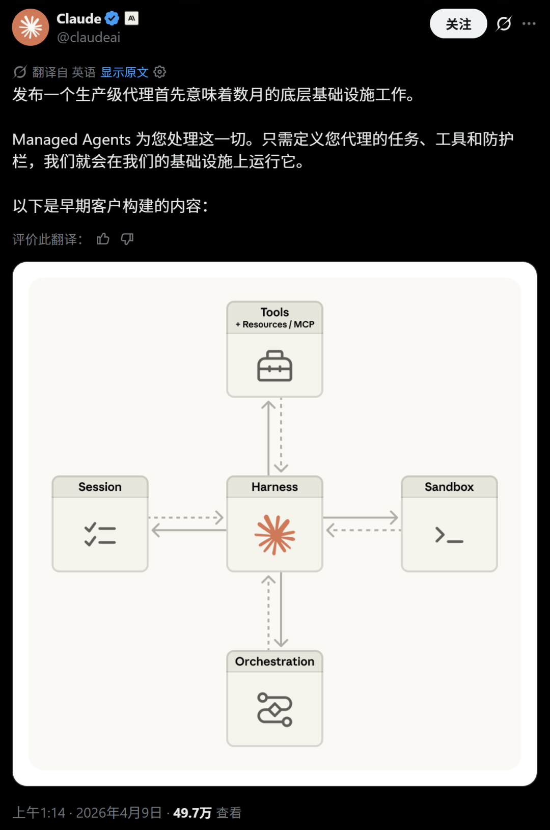 4月9日,Claude官方发布帖子,推出一项名叫Claude Managed Agents的功能。