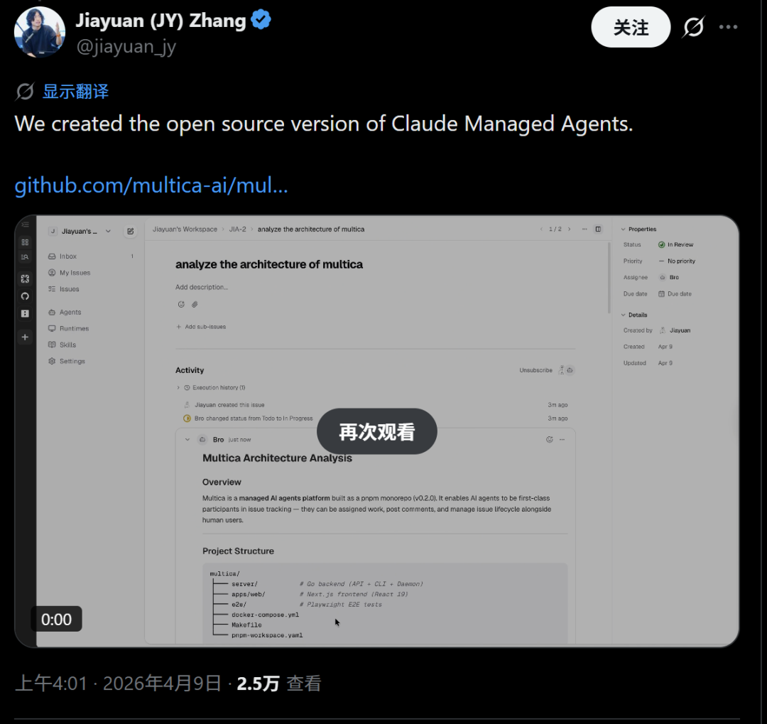 devv.ai创始人兼CEO、前TikTok_US的高管Jiayuan Zhang发布Github链接称他们开发了Claude Managed Agents的开源版本。不过具体好不好用、效果如何,还有待验证。