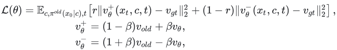 DiffusionNFT的motivation和推导过程请参见原论文,这里只列出其最终的损失函数: