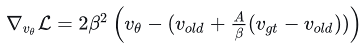 其对应的优化目标(之一)为: ,这个优化目标就比Flow-GRPO的好理解多了,起码v应该是向另一个v移动:如果当前样本很好时,比如A=1,那么优化目标就是 ;当样本很差例如A=-1时,要将其沿 推向远离 的方向,此时优化目标为 ,也就是向外插1倍的位置,非常的直观:
