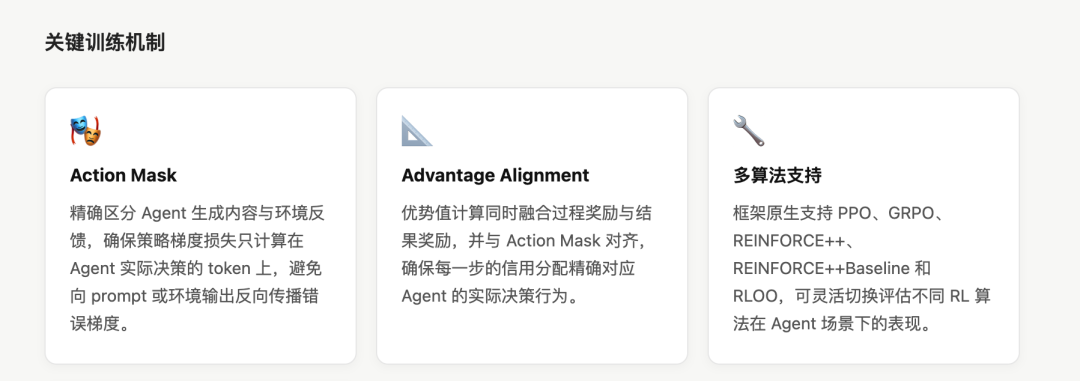 - 通过 Loss Mask 区分 Prompt 与 Response,训练只对模型生成的 token 计算梯度,工具返回的内容不参与更新。