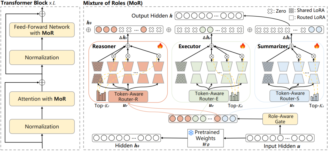为了表征分解后的能力,进一步提出了Mixture‑of‑Roles(MoR)框架,如图2所示。