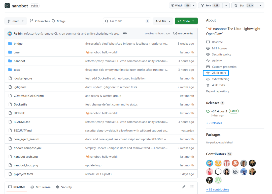 项目地址:https://github.com/HKUDS/nanobot