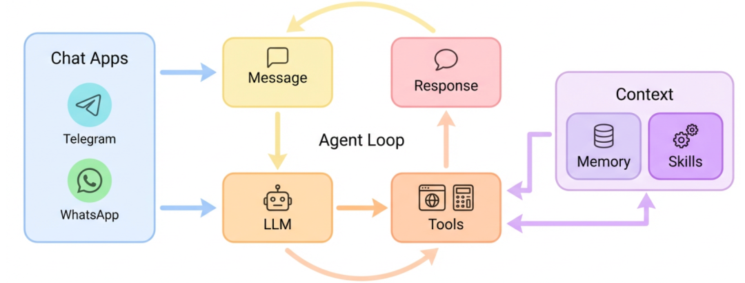 2026年,开源AI智能体赛道最火的项目莫过于OpenClaw (之前叫Clawdbot)。它能够7x24小时在线、支持多平台聊天、调用工具、执行定时任务、写代码、处理邮件……真正把大模型从“聊天工具”升级成了“数字员工”。但它的代码量超过40万行代码,不太适合进行二次开发或学习。