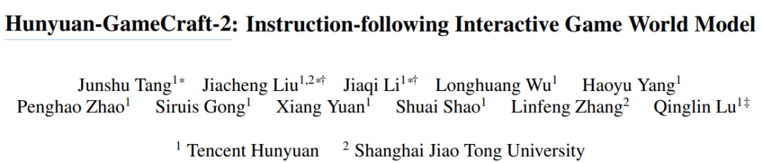 论文标题:Hunyuan-GameCraft-2: Instruction-following Interactive Game World Model