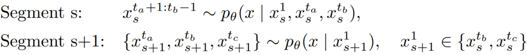 举例而言,设 , , ,当前片段的规划帧 将立即作为下一片段的初始帧 。因此,下一片段可在当前片段仍在填充其中间帧(例如 )时,开始其微规划。这种分段独立性自然实现了片段并行生成,其形式化表达如下所示: