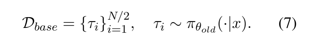 为了与标准强化学习方法进行公平比较,将采样预算的一半分配给标准探索,另一半用于重试样本,因此总采样量保持不变。给定一个查询 x ,从策略模型 中采样 N/2 条基础轨迹。这些轨迹既用于建立基线性能,也为后续的反思提供原始素材: