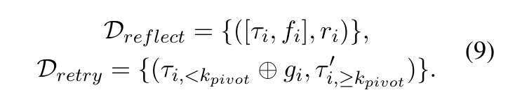 (i)反思任务训练模型在给定轨迹与环境反馈 f 的情况下生成结构化诊断 r ;