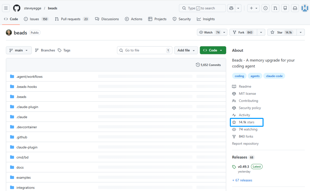 为此,今天要给大家介绍Steve Yegge大佬(曾任职于Geoworks、亚马逊、谷歌、Grab、Sourcegraph)的开源项目Beads——专为 AI 智能体设计的外部记忆工具。它用具备依赖感知的图结构取代传统杂乱无章的 Markdown 任务清单,提供显式依赖管理、执行任务溯源、会话状态持久化、多智能体任务隔离分配与语义化审计追踪能力。该项目在github上已收获 14.1k stars。