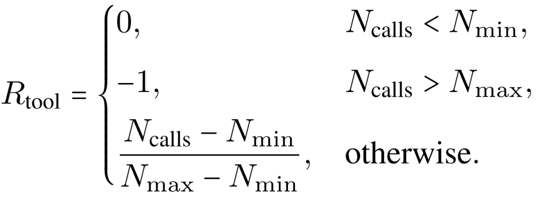 工具使用奖励:为鼓励适当的证据收集,研究团队定义,Ncalls=min(web_search, crawl_page),Nmin=2,Nmax=8。工具使用奖励为: