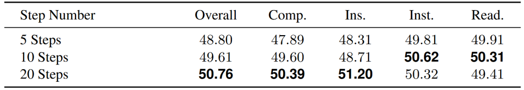 推理步骤优化:研究团队尝试了三种不同的工作流步骤:5、10和20。