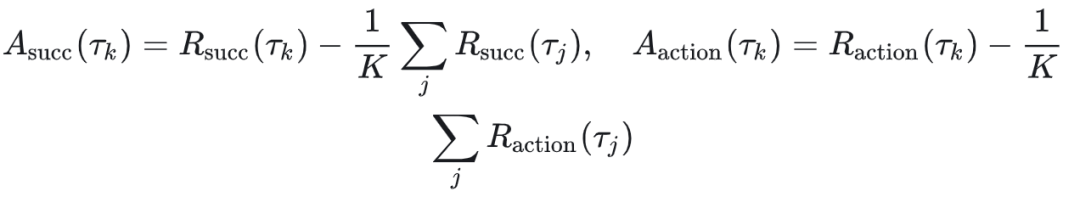 基于 group-relative 形式,分别计算任务级与动作级优势: