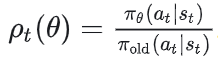 做多轮 mini-batch 更新,但每一步更新都不能离旧策略太远。PPO用一个重要性采样比值来衡量“新旧策略差多少”: