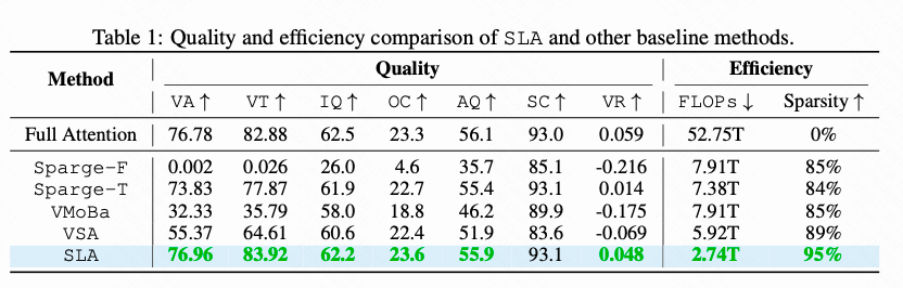 但我注意到一点,SLA用了Sparge Attention作为baseline,效果很差: