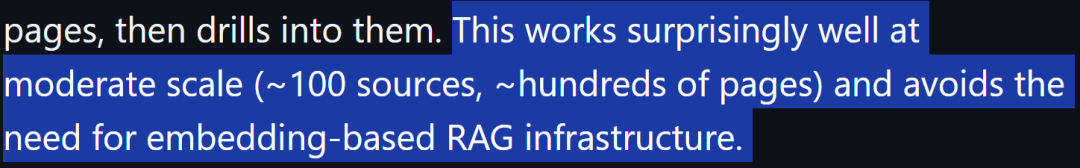 整个架构只需要Obsidian + Git + 智能体就能跑起来,卡帕西亲测并写道“这种方法在中等规模(约100个来源,数百页)下出人意料地有效,并避免了基于向量化的RAG基础设施的需求”。