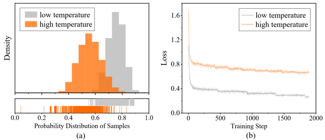 该课程学习式调度先易后难,低温样本快速建立基础,高温样本拓宽分布覆盖,兼顾了早期训练的稳定性与后期知识覆盖的广度。