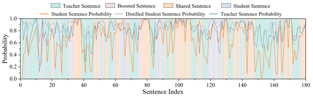 共享句子:师生概率相近且蒸馏后不变的句子。