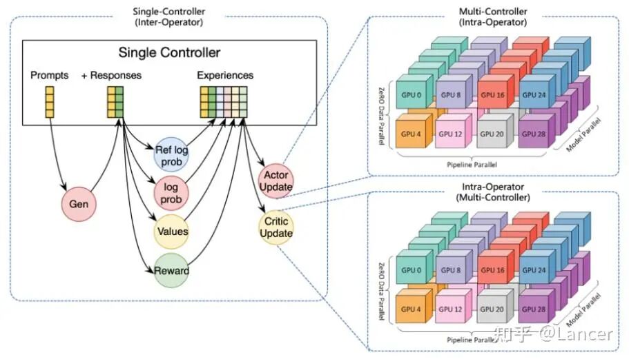 上述的生成器-训练器架构,配合以Ray为代表的分布式协调层,构成了大模型强化学习系统的“黄金标准”。RL 训练计算成本极高,涉及上述大规模并行推理和参数更新。一个优秀的 RL 库必须能高效、稳定、可扩展地协调这两个阶段。