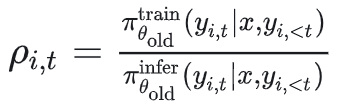 这个比率衡量的是:同一个 token,在训练策略下的概率和在推理策略下的概率相差有多大。
