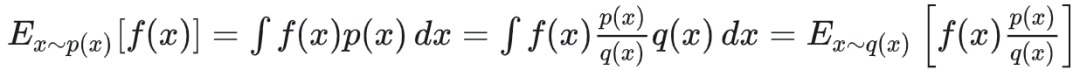 这个的数学解释是,我们想要计算期望值 ,但从分布 直接采样困难或成本高昂,我们有另一个容易采样的分布 ,希望用它来估计原期望值