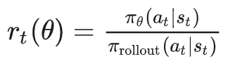 分子:当前模型对这个动作的概率分母:rollout 时那个模型给这个动作的概率