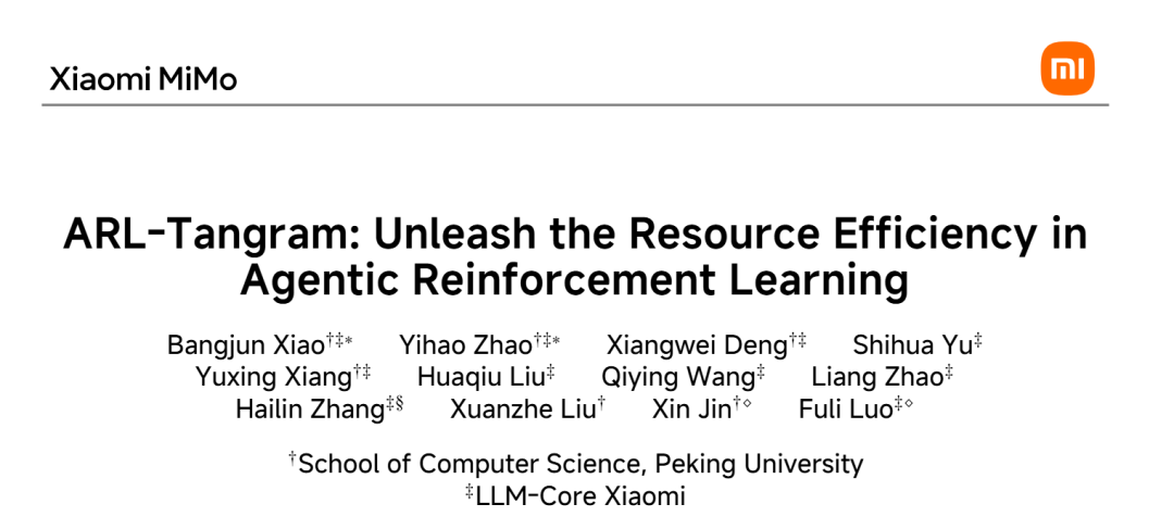 为此,小米罗福莉团队联合北京大学提出动作级编排(action-level orchestration)并构建统一资源管理系统 ARL-Tangram,能够实现细粒度的外部资源共享与弹性调度。ARL-Tangram采用统一的动作级表征与弹性调度算法,在满足异构资源约束的同时,最小化动作完成时间。此外,系统还定制了异构资源管理器,以高效支持在具有不同特性与拓扑结构的资源上执行动作级任务。在实际智能体强化学习任务上的评估表明,ARL-Tangram将平均动作完成时间(ACT)最多提升达 4.3×,强化学习训练步长加速 1.5×,外部资源节省 71.2%。该系统目前已部署,用于支持小米 MiMo 系列大模型的训练。