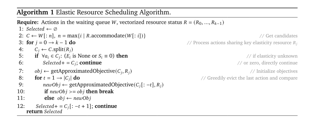 ARL-Tangram 的核心是弹性资源调度算法,其设计目标为最小化动作完成时间(Action Completion Time, ACT)。研究团队发现,缩短动作执行时间能够提升智能体强化学习(RL)训练的端到端效率,因此基于上述动作表征方法与系统实时状态,设计了一种启发式调度算法,该算法内置贪婪驱逐机制(greedy eviction mechanism),可动态制定调度策略,避免了因分配过于激进或保守,而导致次优的 ACT 和强化学习训练效率下降。
