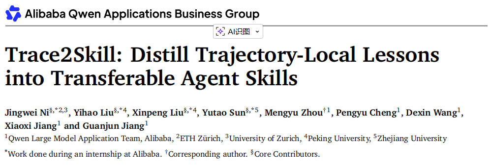 - 论文标题:Trace2Skill: Distill Trajectory-Local Lessons into Transferable Agent Skills