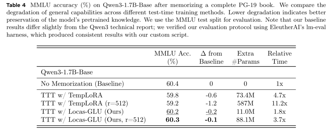 表 4 表明,与 TempLoRA 相比,Locas-GLU 表现出的灾难性遗忘显著更少。