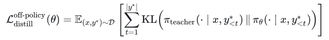 Off-Policy Distillation旨在最小化学生策略 与教师策略 在固定数据集 上的KL散度: