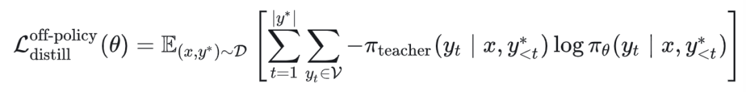 SFT与Off-Policy Distillation:在 的基础上,SFT直接使用one-hot,Off-Policy Disitllation则是使用教师模型输出的分布进行加权。