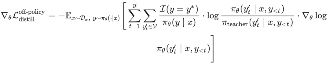 Off-Policy Distillation梯度可重写为: