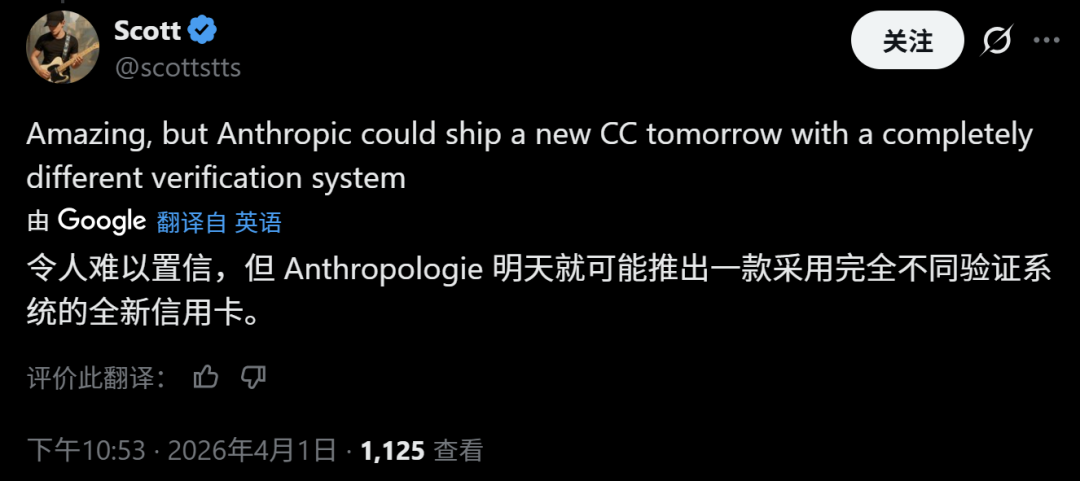 还有用户评论说,这种反向破解让人震惊,但是Anthropic可能很快就会有不同的验证机制。