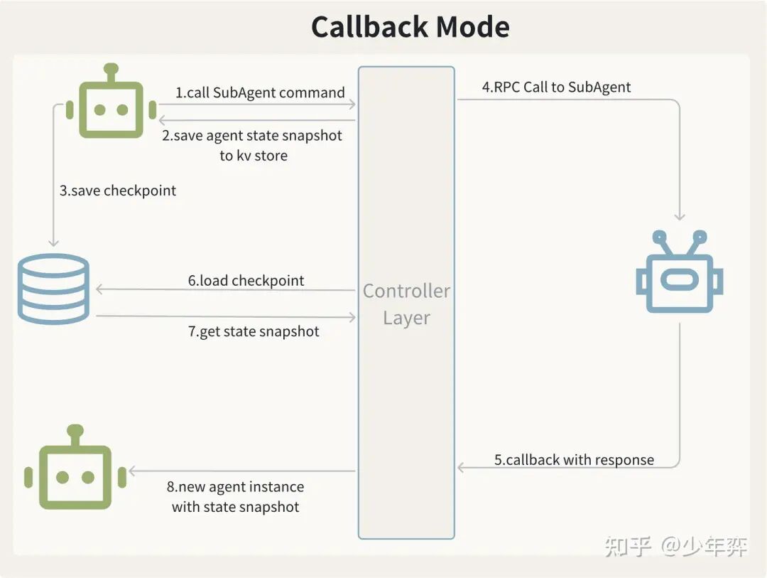 所以这里把外呼这种长耗时任务做成了callback。等待外呼执行时我的主Agent的状态被save到了KV存储中,等到结果回来再load and parse callback。