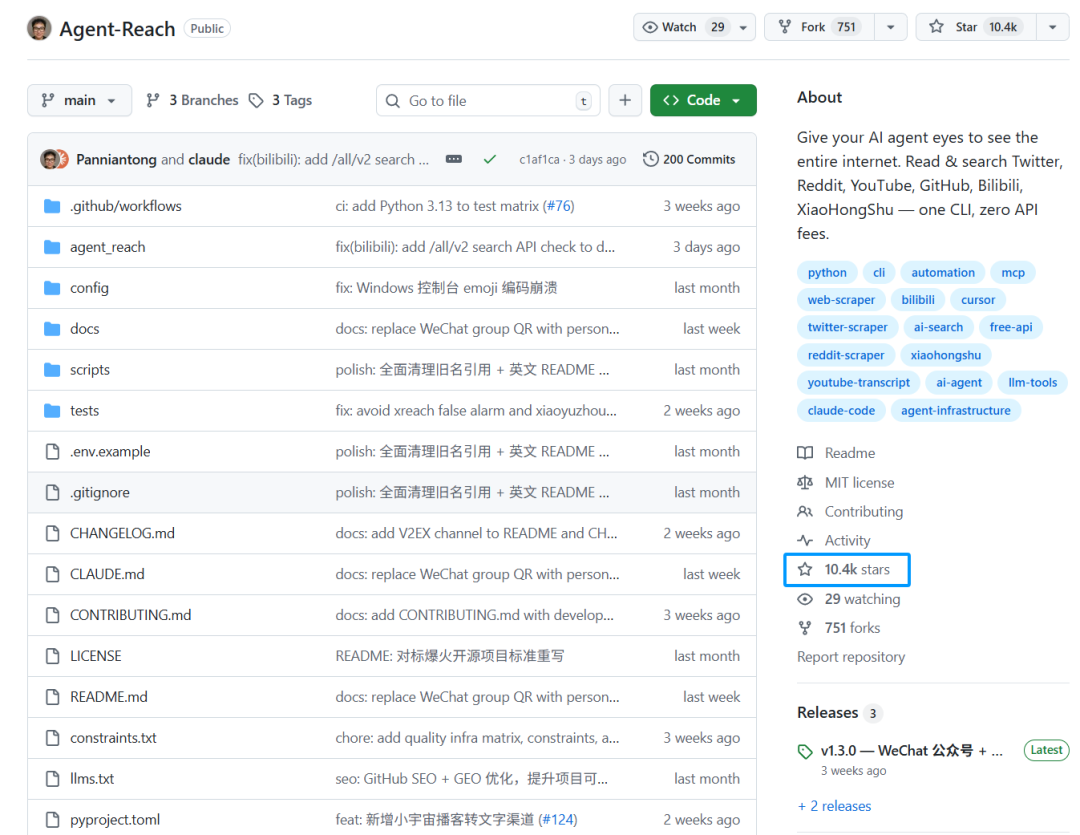 10.4k Stars!CLI联网神器Agent-Reach开源,让OpenClaw自由冲浪B站/推特/小红书